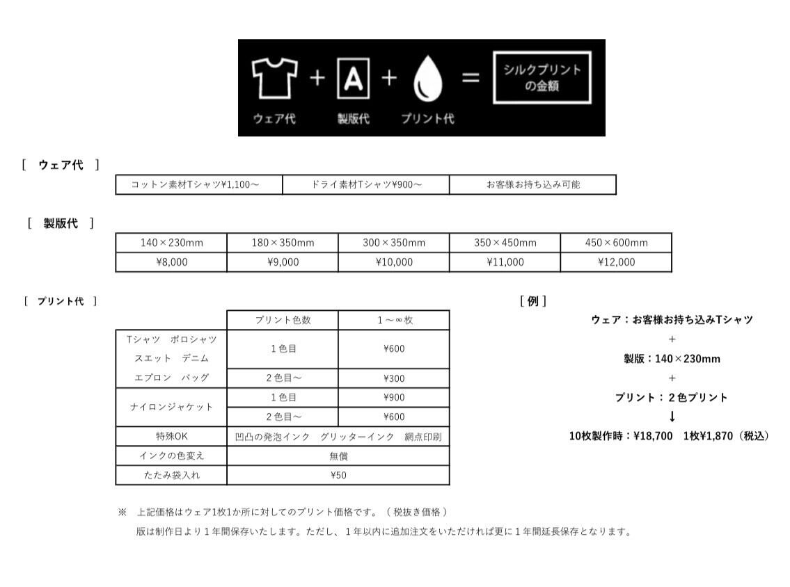 シルクスクリーンプリント/1色・1か所プリント